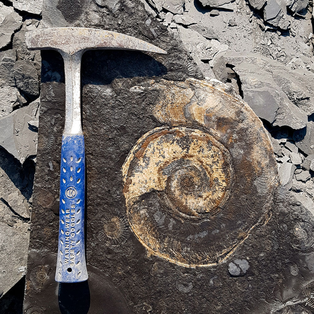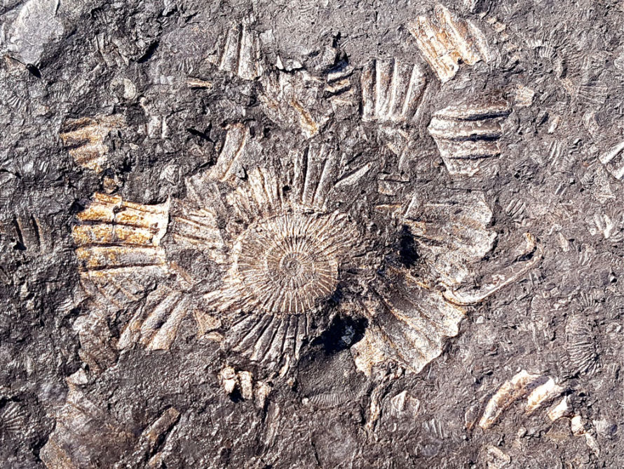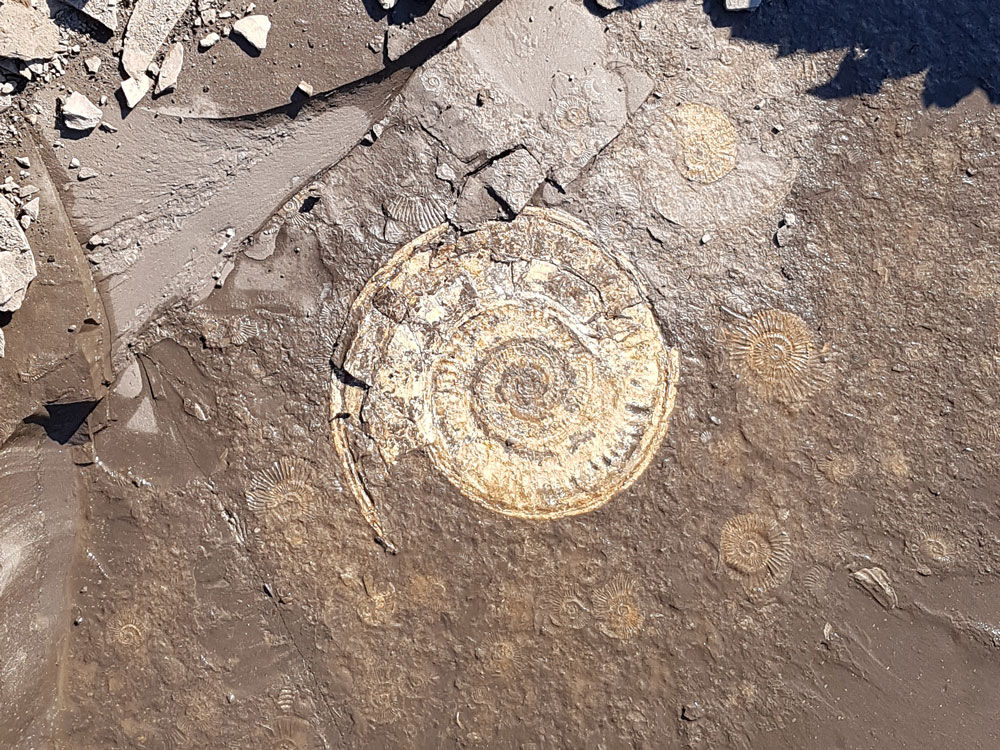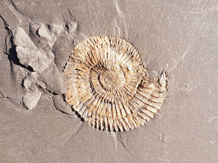 Da es sich bei unserem Gestein um die 180 Millionen Jahre alten Ablagerungen eines flachen Meeres handelt, finden Sie bei uns vor allem Fossilien der damaligen Meeresbewohner - besonders Ammoniten, Muscheln und Tintenfische. Wie die aussehen, und was es sonst noch Spannendes zu finden gibt - los geht's:
